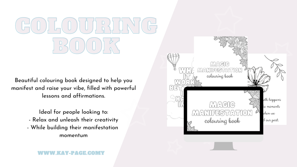 Colouring is one of my favourite ways to pass the time and it also helps me to lift my vibe, allowing me to do something that is fully present and in the moment. It’s a huge manifestation and relaxation tool for me. But I wanted something that would help me to align, while also challenging my listing beliefs and manifesting muscle.